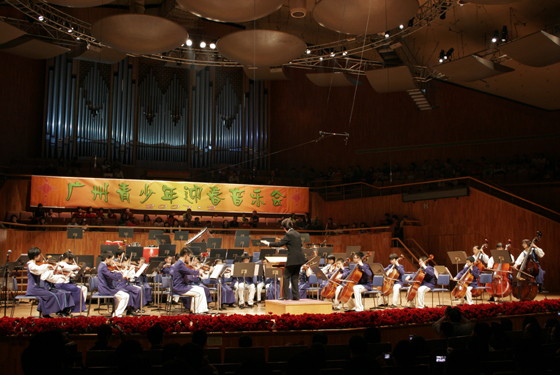广州少年宫弦乐团成立于2005年,是一只年轻的队伍,团员均是来自本市各校的弦乐爱好者。目前有团员40人,年龄7至15岁,他们当中有不少是省市各项弦乐比赛的获奖者。弦乐团成立仅仅三年,排练了一套亨德尔、莫扎特的经典作品及中国作品。2005年8月,与美国卡拉巴萨斯明星乐队、广州青年管乐团合作,进行了弦乐团成立以来的首场演出,给大家耳目一新的感觉。2006年春节前夕,在广州青少年迎春音乐会上再度亮相,其默契的配合,优美的音色和音乐表现能力,受到同行和观众的好评。2007年春节前夕,再度与广州青年管乐团合作,举行广州青少年迎春音乐会,受到广大青少年儿童的热烈欢迎。