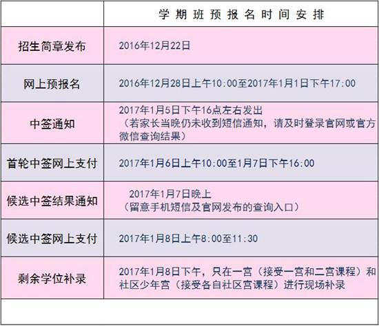 ● 现场预报名。(2016年12月28日(周三)上午10:00起至2017年1月1日(周日)下午17:00,只接受60岁以上的学员家长为其家属递交预报名表,同样要参与抽签。)