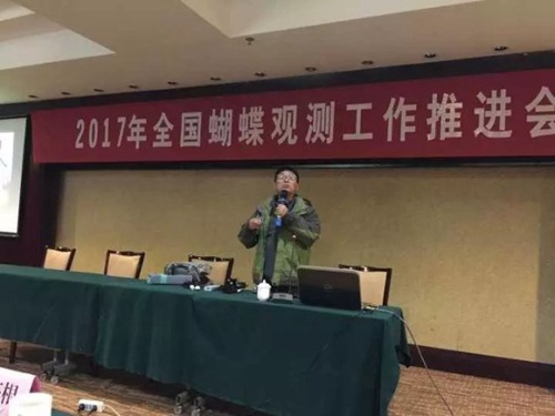 2017年3月3日,广州市少年宫陈锡昌老师受邀参加了井冈山2017年全国蝴蝶观测工作推进会暨观测技术培训,并在会上汇报了2016年的蝴蝶观测工作的结果,分享了观测中遇到的问题及工作经验,并与到会的代表们分享交流蝴蝶全虫态生态摄影技术和2017年的观测工作计划。此外,有关专家就蝴蝶观测技术规范,野外观测蝶种分类鉴定、蝴蝶生态摄影技术等进行了培训。