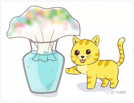 - 将纸巾下端拧紧插入水中,静待“花”开,不要眨眼睛,美景马上就出现了