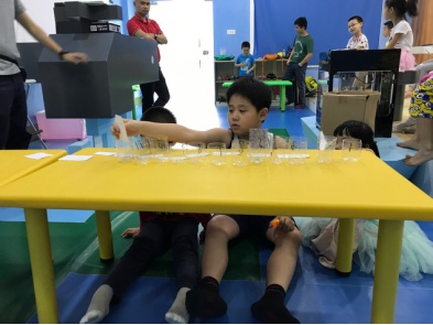 紧接着,主讲老师趁热打铁的开始了分组比赛。把动物们都放进对应的笼子里。每个小组有乒乓球一个,一对筷子,要如何在只有声音的情况下给队友传递信息,正确的将动物匹配到对应笼子里呢?