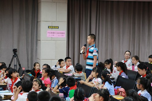 (红领巾小记者团优秀学员代表陈睿鸿向大家分享)