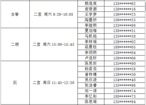 关于文艺培训部2018年第一学期国乐升班录取名单的通知