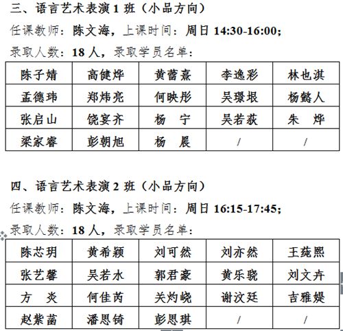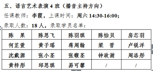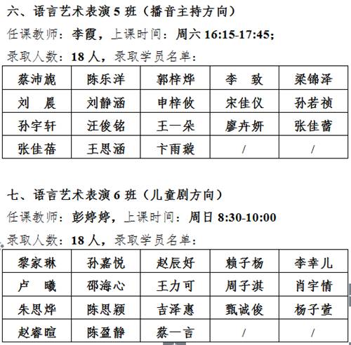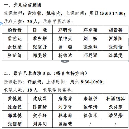 您好!本教学组于5月19至20日期间,在广州市第二少年宫开展了语言艺术相关专业高级班及剧团班学员升级考核工作,在各位学员及家长的支持配合下,考核工作圆满完成,根据考核情况现将录取分班结果公告如下: