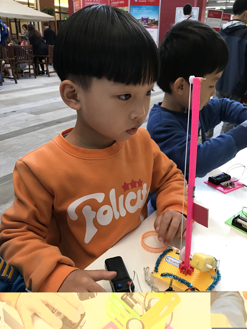 本课程内容丰富,涵盖力学、电学等多学科知识,结合生活中的科学常识,让学生们自己动手制作利用声、光、电动、红外线感应、线操控等形式的科技作品。结合STEAM的跨学科理念(科学、技术、工程、艺术、数学),以Project-based learning的学习方式,在教学过程中传递创客的思维、态度、技能和品质,培养学生的动手能力、科技认知、团队协作、创意思维和分享精神。