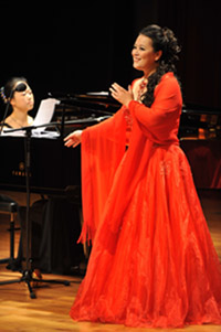 唱,其嗓音高亢嘹亮、婉转悠扬、刚柔并济,是不可多得的抒情女高
