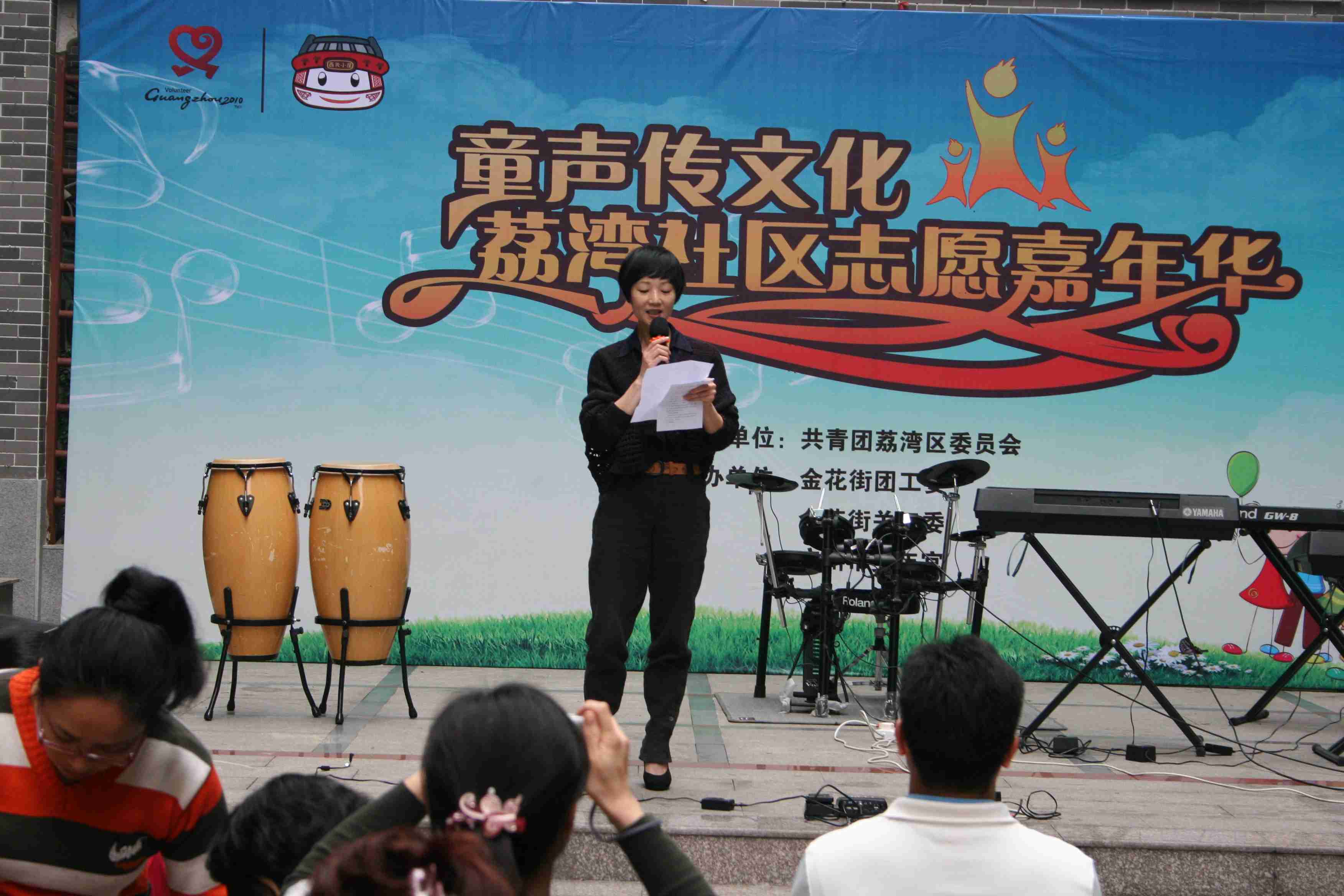 下午,由共青团荔湾区金华街工作委员会主办,广州市少年宫、共青团荔湾区国税委员会、广州医学院团委共同承办的 “志愿西关行”第一期演出活动在广州荔湾区西华路金花街蟠虬苑文化广场完满结束。天公作美,活动过程没有下雨。团荔湾区委副书记、金花街委员会领导及少年宫温如珍副主任都出席了本次活动。小演员们精神焕发,积极投入,整场演出都在街坊邻居们的赞叹声中进行,这次演出的成功让我们为接下来的系列巡演充满信心,相信今后会越来越好,敬请大家继续期待及关注!