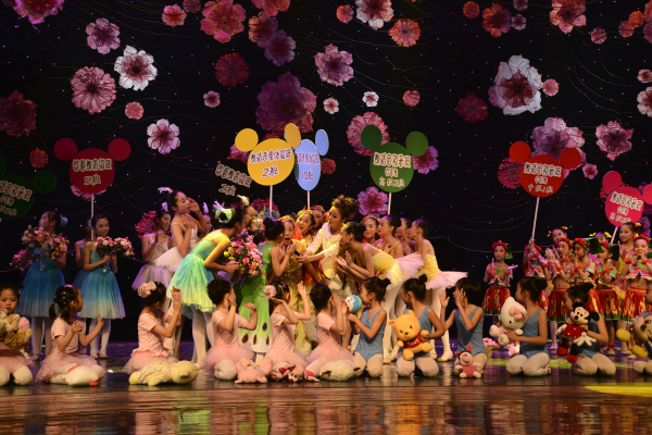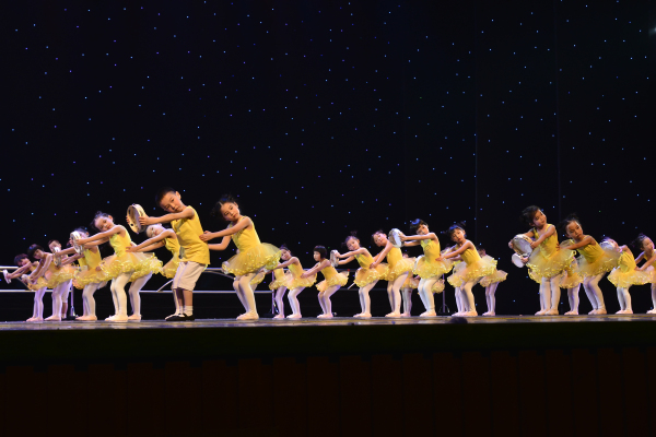 舞蹈中心一年一度的教学成果展演给孩子们搭建了一个展现自我、绽放美丽的艺术实践平台,深受学生及家长的喜爱。为了让更多的观众能一睹孩子们的艺术风采,舞蹈中心于2013年12月21日、22日,一连举办了两场名为“舞童年”的舞蹈教学成果展演,广州市少年宫杨俊东主任、李约坚书记和温如珍副主任观看了演出。展演由“成品少儿舞蹈”、“基础训练展示”和“舞蹈团展演”三大部分组成,涵括了儿童舞、民族民间舞、芭蕾舞、古典舞、现代舞、代表性舞蹈等多种舞蹈类型,两场演出内容各不相同,但同样精彩不断,舞蹈中心还携手社区少年宫学员代表共同参与表演。在每场晚会历时两个多小时的演出中,惊喜不断,高潮迭起,晚会在师生共同高歌《童年》中拉上帷幕。
