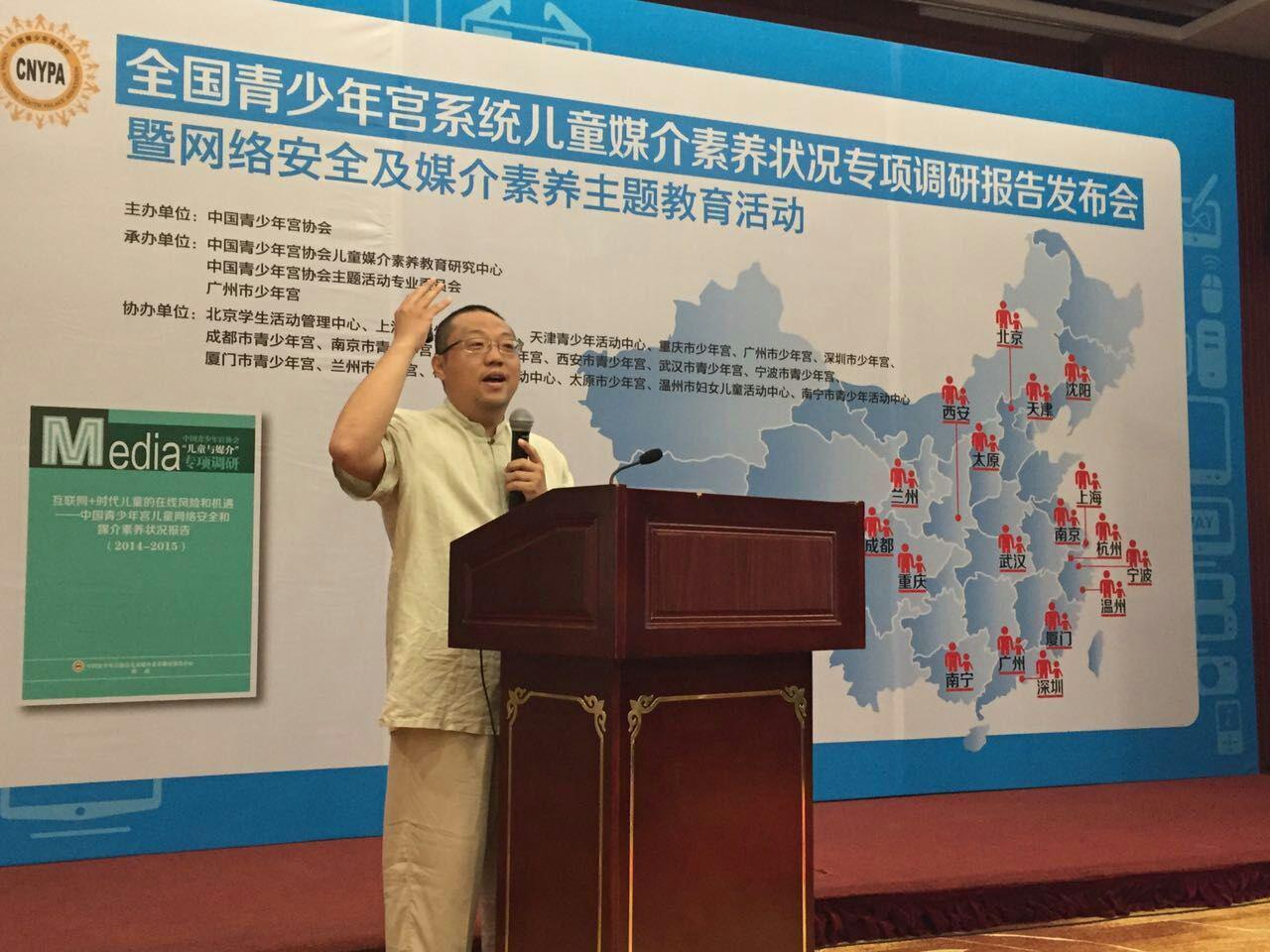 (中国青少年宫协会儿童媒介素养教育研究中心主任、广州市少年宫副主任张海波发布报告)