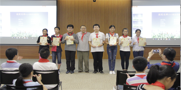 市少年宫副主任、市少先队总辅导员张海波,市少年宫少培部部长杨晓红,市少年宫少培部副部长何翠霞三位老师分别给即将卸任的少理事们颁发了“勤奋奖”“进步之星奖”“突出贡献奖”,感谢他们对市少理会付出的贡献,肯定了他们的进步和成长。张海波老师对新老少理事们寄予三点希望:希望新市少理事们积极参与市少理会组织的各种活动,珍惜机会,锻炼自己,促进成长;希望新老市少理事之间多作交流和沟通,互相取长补短,共同进步;希望卸任的市少理事,不忘前行,向更广阔的平台迈进,做更好的自己。